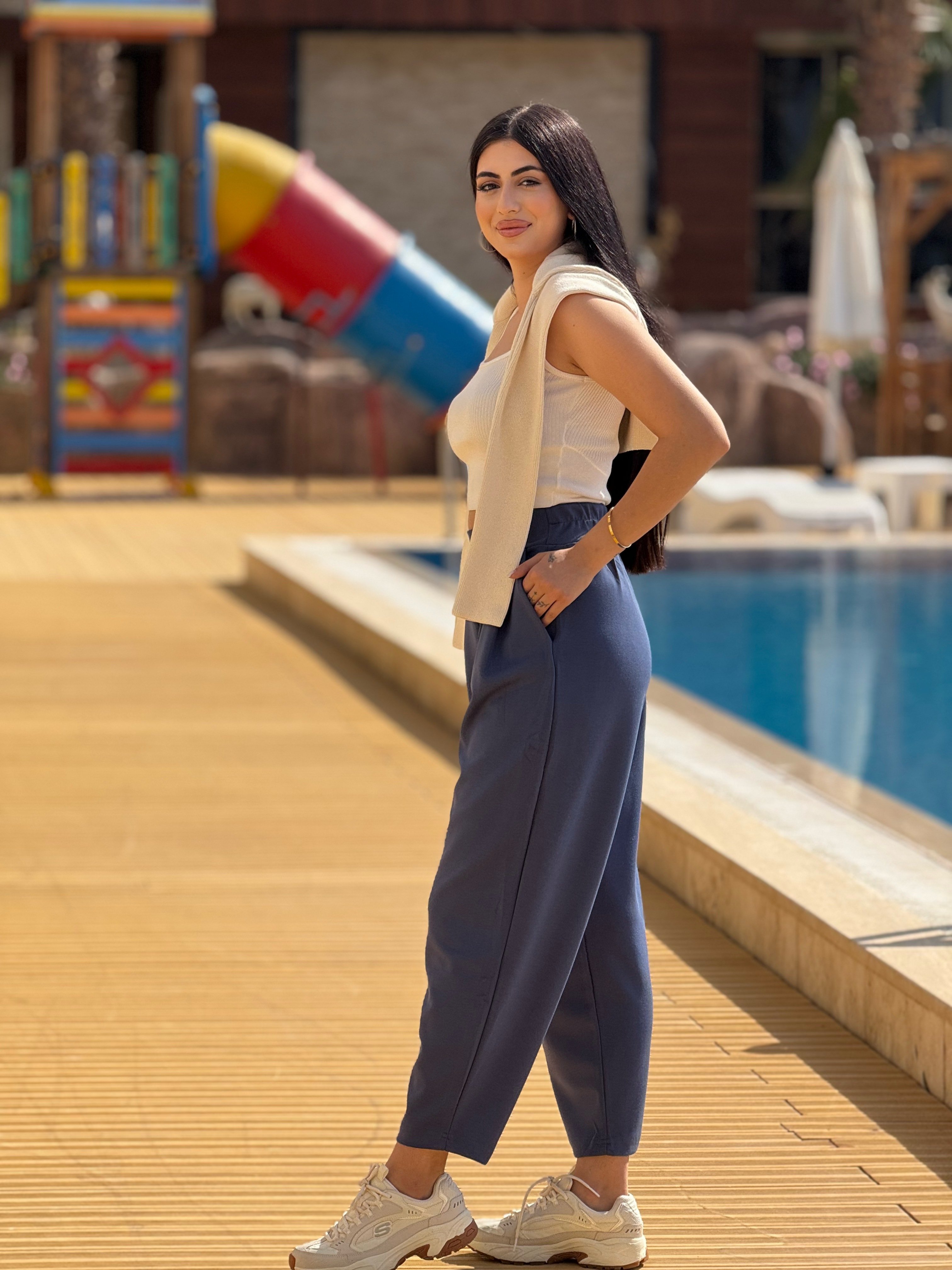 Oysho Kumaş Beli Lastikli Harem Pantalon İndigo (2024138)