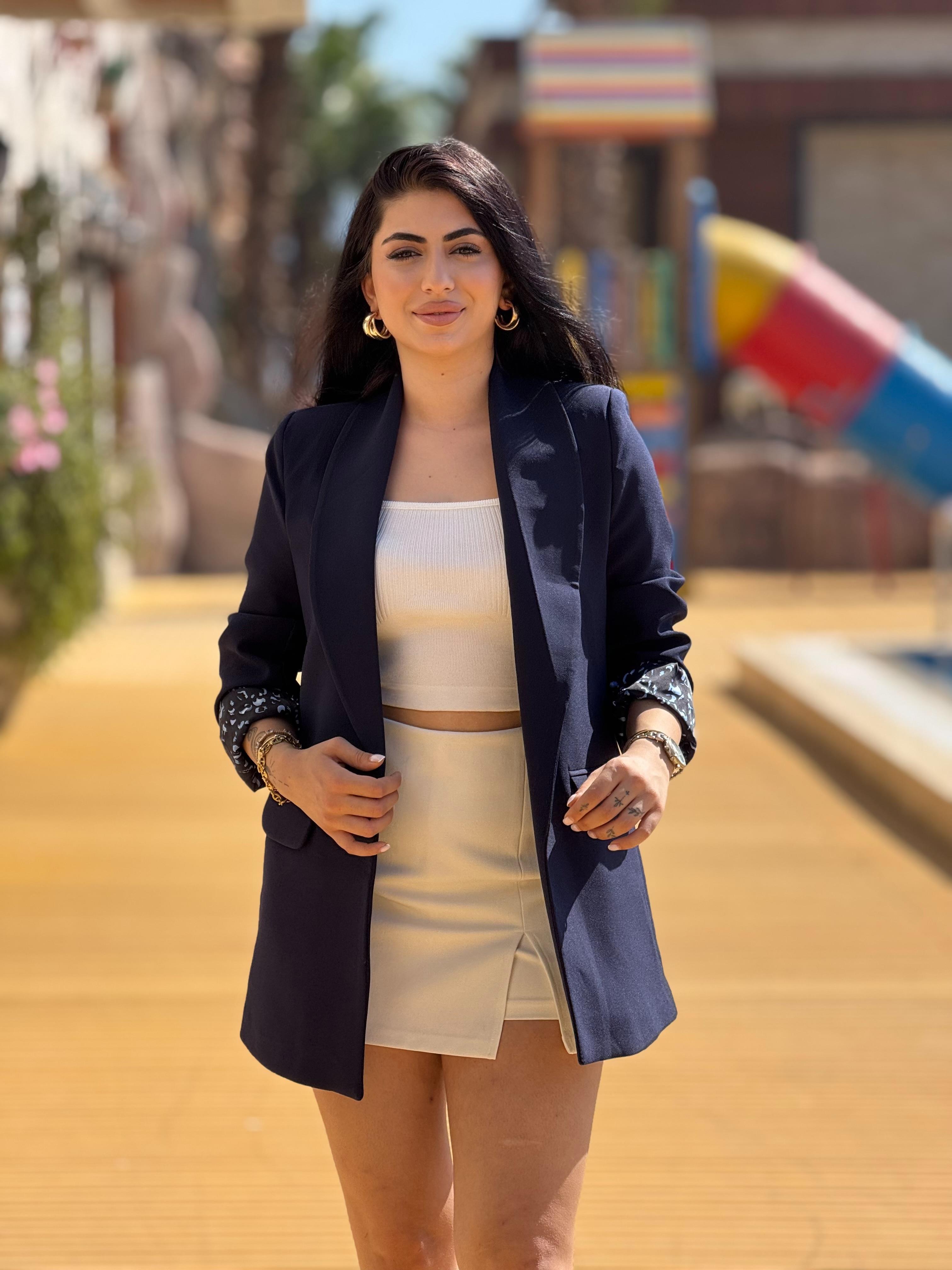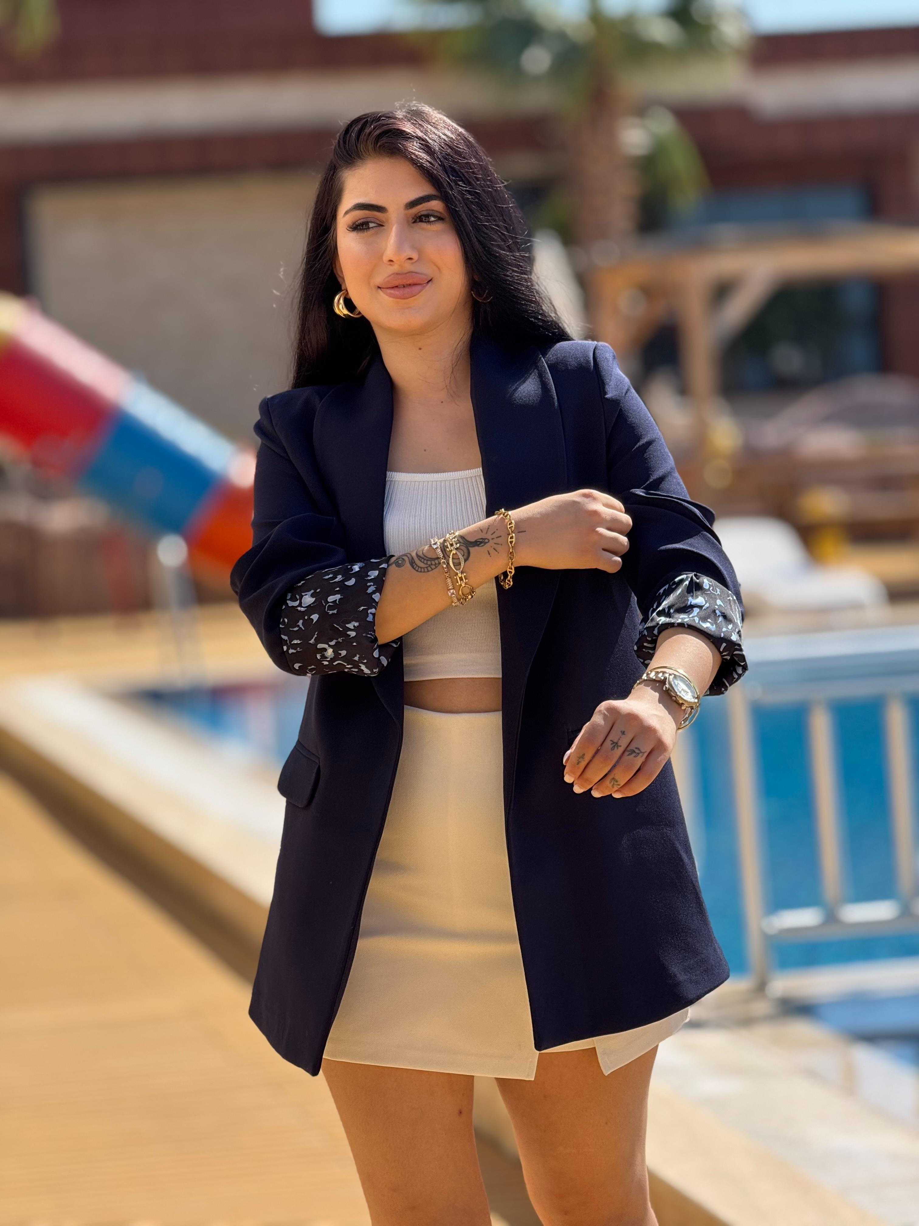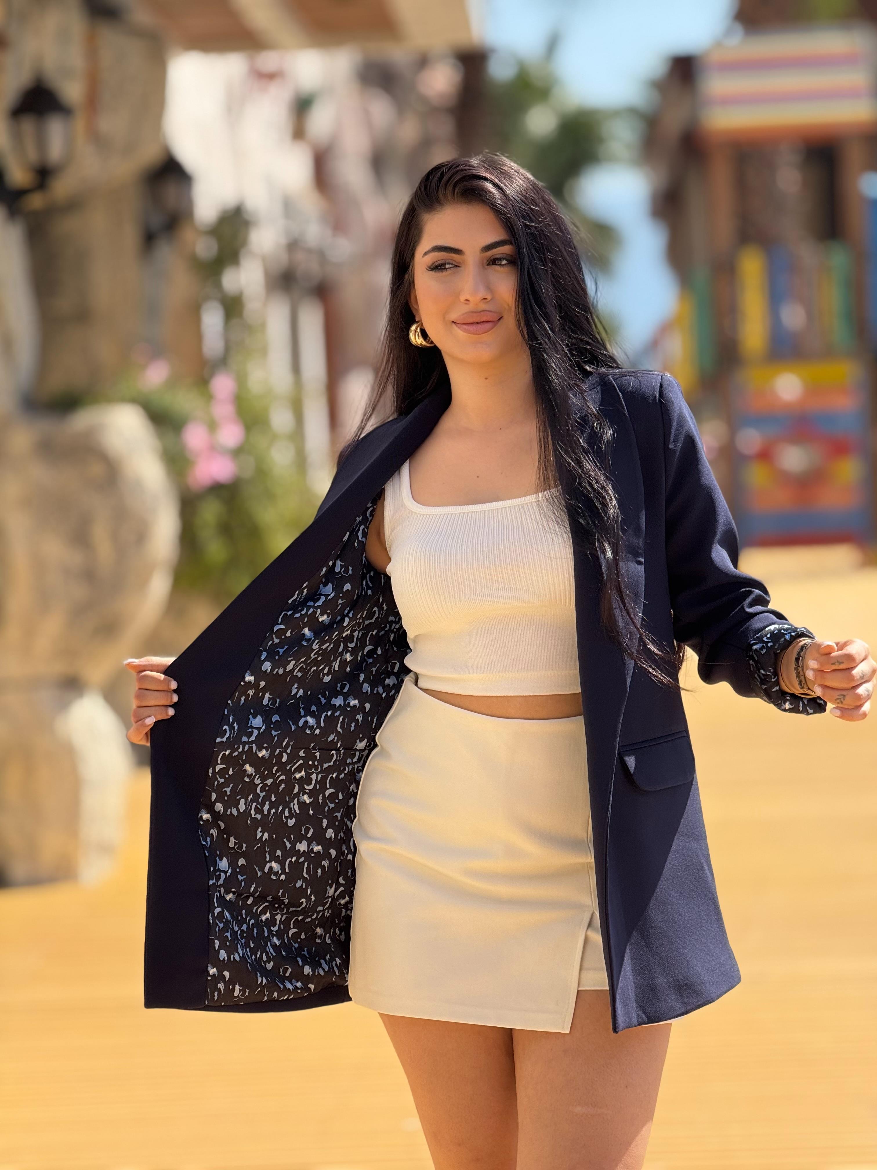 Premium Kalite Leopar Astarlı Duble Kumaş Blazer Ceket Lacivert (2024132)
