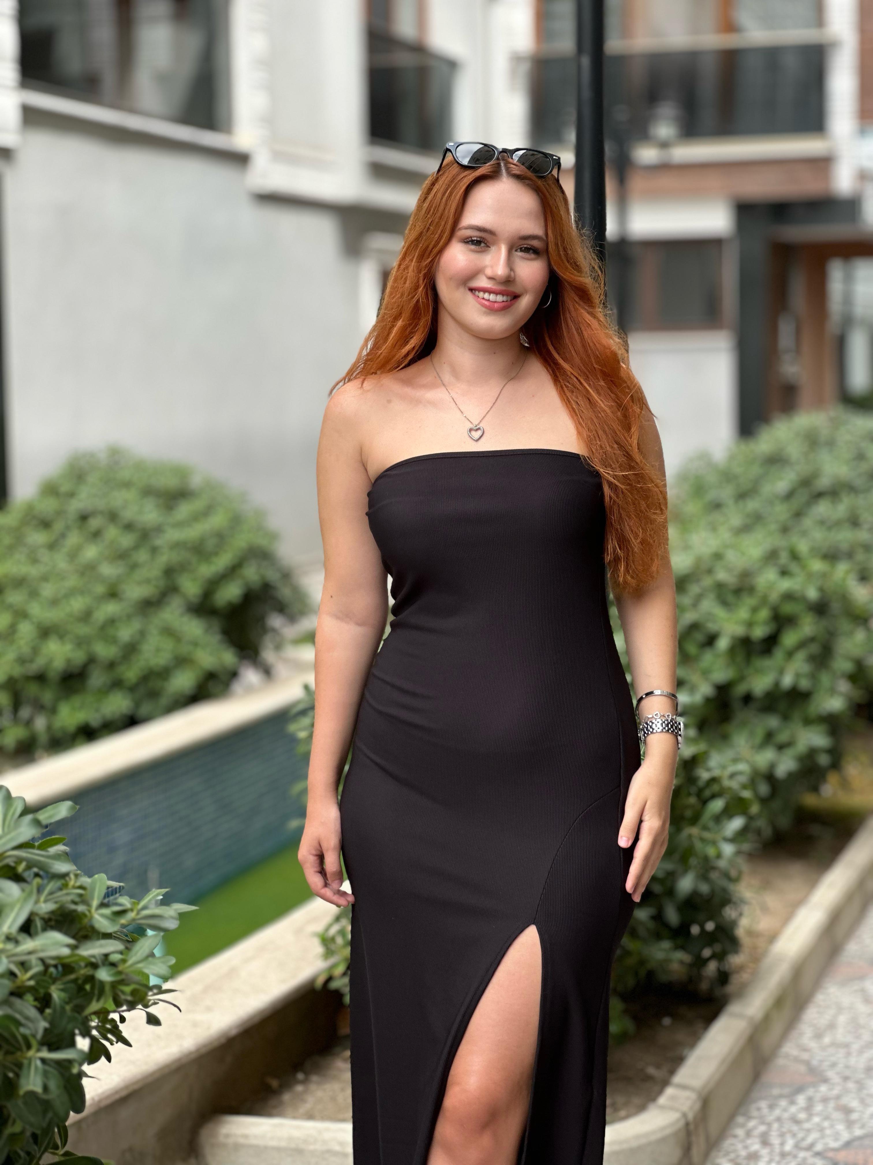 Siyah Straplez Ottomon Kumaş Elbise (2023136)